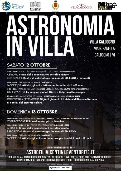 ASTRONOMIA IN VILLA, 11-12 Ottobre 2025, Villa Caldogno, Caldogno (VI)